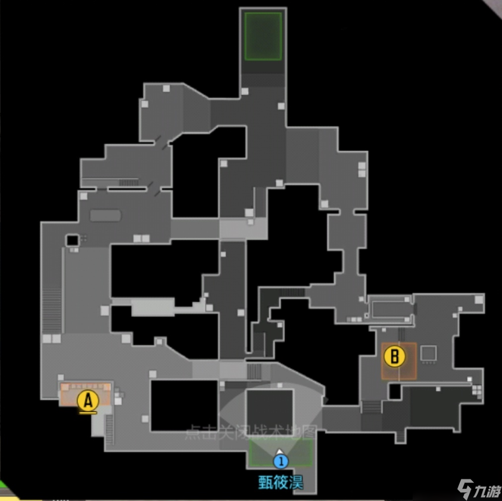 由于B包点和B通道的独特地形,最佳的防守策略是采用狙击防御。二楼平台不仅视野开阔,还有木箱提供一定程度的下半身遮挡,非常适合狙击手施展。瞄准A通道,露头一个狙一个,优秀的狙击手可以一个人守护一包点。同时,建议有一位队友在中路监控敌人动态,如果有人从B通道转到A通道,应及时通报。