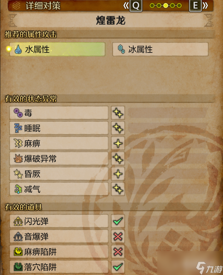 怪物猎人:荒野里的煌雷龙实力强劲。要击败它,可针对头部、双翼及尾部发动攻击,并尝试断尾。建议使用水或冰作为属性攻击,以及搭配闪光弹与落穴陷阱等道具。