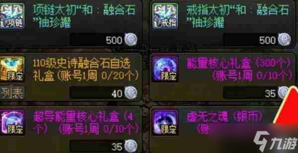 强化装备的关键:融合石与虚无之魂史诗融合礼盒每币购买一次,每周限购,快速提升史诗装备等级。太初项链/戒指使用袖珍罐可以升级获得,随机获得的版本更好;虚无之魂需要币每月限购(可结转至次月),用于装备强化和提升。