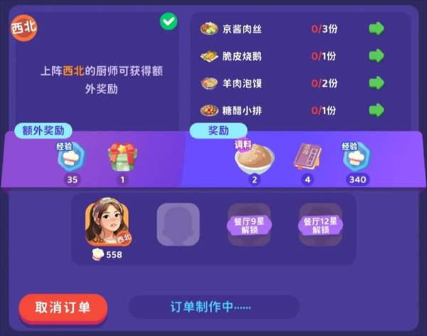 外卖订单至关重要,通常附带额外奖励。正确选择的厨师能带回调料包,而不匹配的订单只需等待几分钟即可重置。每天有四个这样的机会!