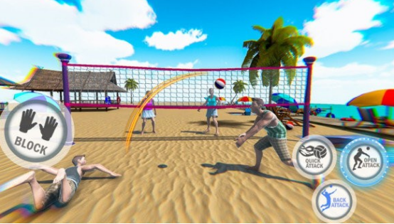 这款游戏真的很有趣,它是一款体育竞技类的游戏。游戏里用了特别好看的卡通画面,让玩家能体验到很真实的排球比赛感觉。玩家可以选一个国家,然后代表这个国家去和世界各地的队伍打沙滩排球,每过一关都特有成就感。玩这个游戏操作起来也挺简单的,只要在屏幕上滑一滑,就能发球、拦截什么的。玩家还能选自己队伍的专属队服,自由组建和培养玩家的队伍,甚至还能换球员的肤色呢。