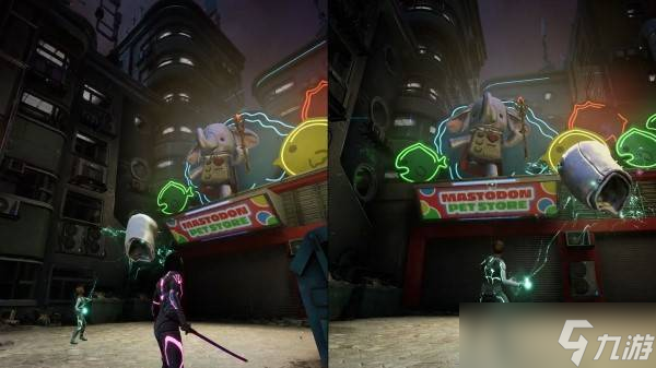 第二章霓虹复仇-电音律动:商店顶部可遇双人成行中最喜爱的“小象女王”。通过使用角色能力拖拽耳朵解锁成就/奖杯罗斯的朋友。