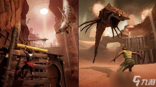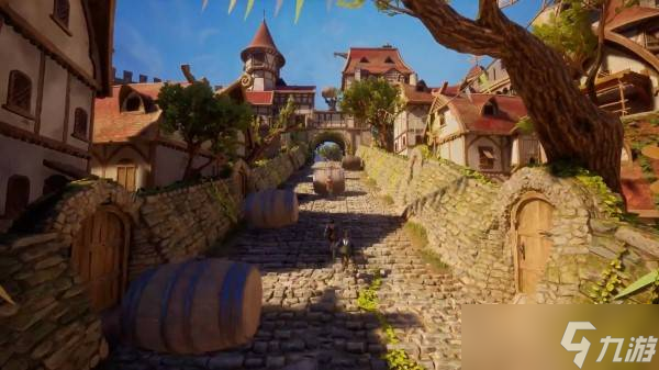 在第二章双影奇境-勇武骑士中,玩家将从滑梯进入室外的草垛,场景设计充满创意,与刺客信条系列风格相似。