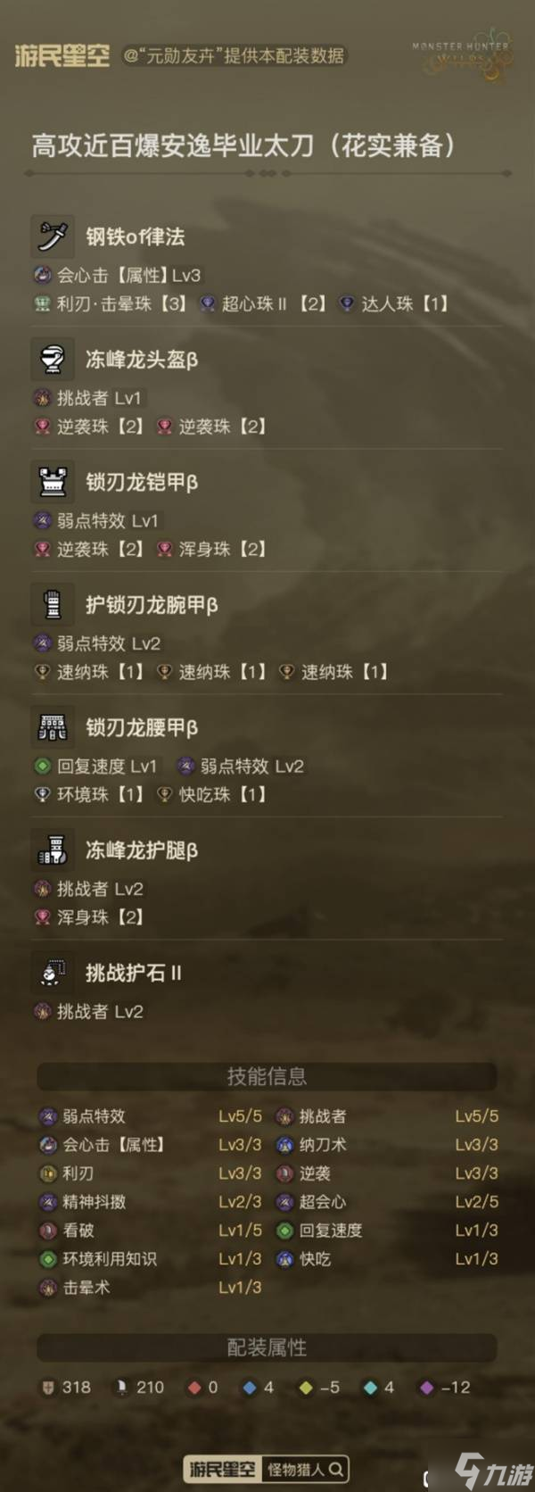 《怪物猎人荒野》太刀高攻百暴配装推荐 太刀怎么配装
