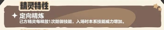定向精练是一种辅助技能,每当己方精灵使用一次防御技能时,就会在入场时本系技能威力增加。非常适合防御型宠物搭配,在战斗中逐步提升多西的输出能力。对于注重团队协作的玩家来说,定向精炼能够有效增强整个队伍战斗力。