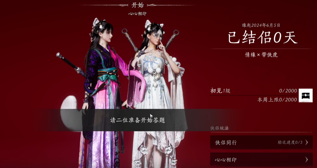 在双方的暮缘之下,他们开始合作完成任务,一起刷副本以提升彼此的好感度。当好感度达到一定数值后,他们就可以缔结为“侠侣”了。双人组队前往祈愿树下,完成“丹崖”的“认证”。