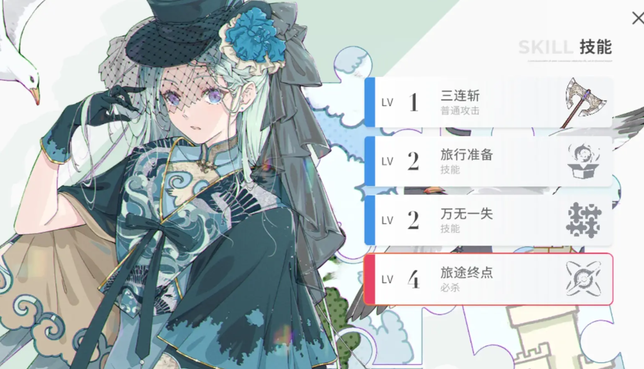 她见识广博,不会炫耀自己的学问,是一位十分冷静的学者,1技能会投掷随时携带的行李箱,行李箱落地时会打开并释放里面的小型黑洞,对周围敌人持续牵引,在这个期间再次释放技能,会收回箱子对目标形成一次伤害并将其向自身方向击飞,最后使用行李箱挥击敌人;