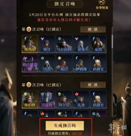 - 锁定100抽后点击下方的【生成预言码】即可。