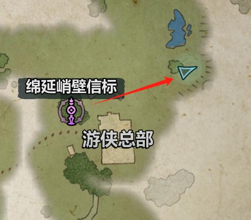 宝箱:在游侠总部旁边的绵延峭壁信标出发一直往前走到尽头下跳获得。