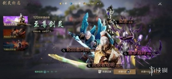 - 星光剑灵祈愿为常驻至尊普通池,120抽保底必得至尊以上剑灵。