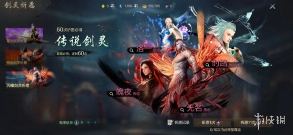 - 闪耀剑灵祈愿为传说级up池,60抽保底必得任一传说剑灵,10次必得至尊级。