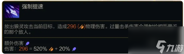 放出狼灵攻击当前目标,造成(攻击力+-法术强度)物理伤害,过量击杀对附近敌人进行伤害弹射。