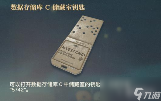 数据存储库C中的储藏室需要特定密码解锁。在中转站内找到了一把背书为“的钥匙卡,但必须通电才能使用。这表明密码是按照柜子上的按钮顺序编排的,而际上代表了通电后的步骤。