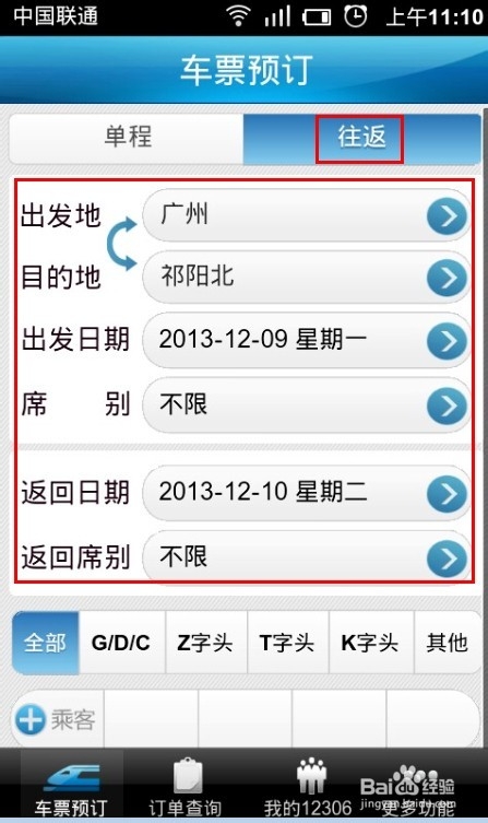 12306手机客户端如何订往返票 方法教程