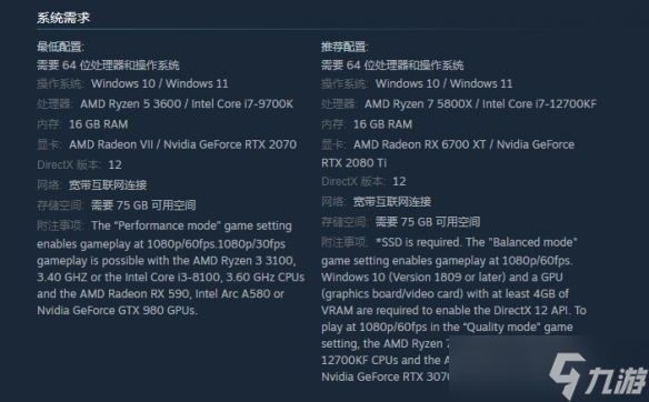 - PC配置如下图所示,只有满足了最低要求才能玩,