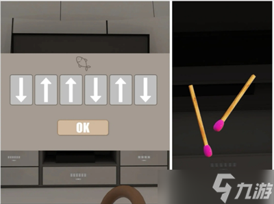 - 记住架子上鱼头的朝向,进入室内,打开电视下的柜子,拿到火柴。