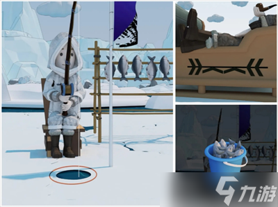 - 点击在钓鱼的人,然后根据雪橇上的方向点击,得到一桶鱼。