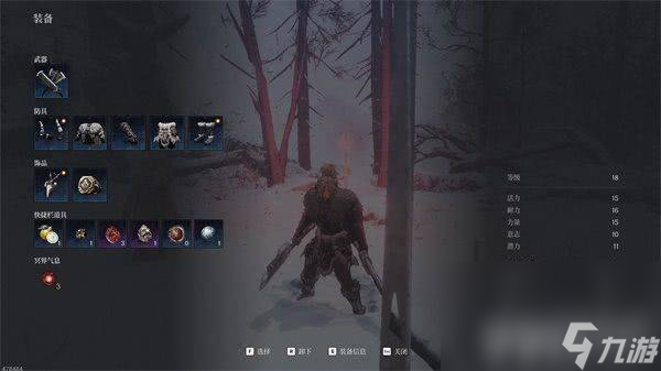 游戏中通过战斗可以积攒斗志,并可通过消耗斗志释放不同技能。最多拥有斗志的Demo中,装备可以通过击败怪物获取属性更高的装备。不过饰品为宝箱和boss击败后获得。装备主要包括武器、防具(五件)及饰品(两件)。同系列装备可触发不同的效果。同时,游戏在存档点升级活力、耐力、力量、意志和潜力五种属性。