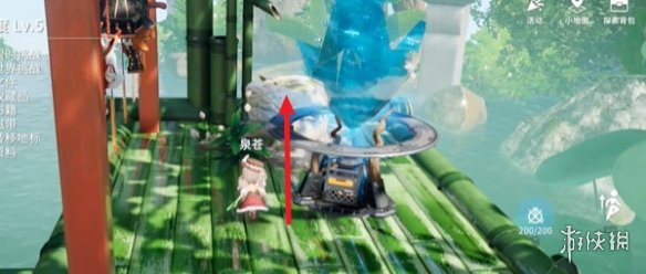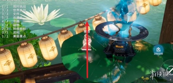8、红箱八:找到箭头处的水晶进行传送,出来后转动一下视角,即可在水晶附近看到红箱,里面是新月石。