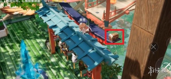 使用传送门前往红箱子,穿过石头并用竹子跳跃至鸟居,即可发现隐藏的新月石。