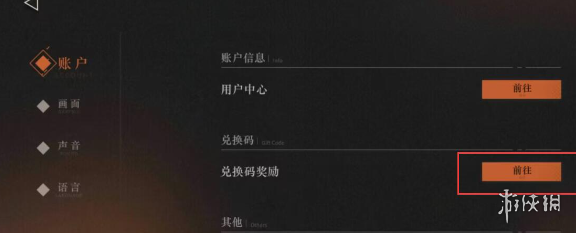 - 然后点击账户—兑换码奖励后方的【前往】按钮。