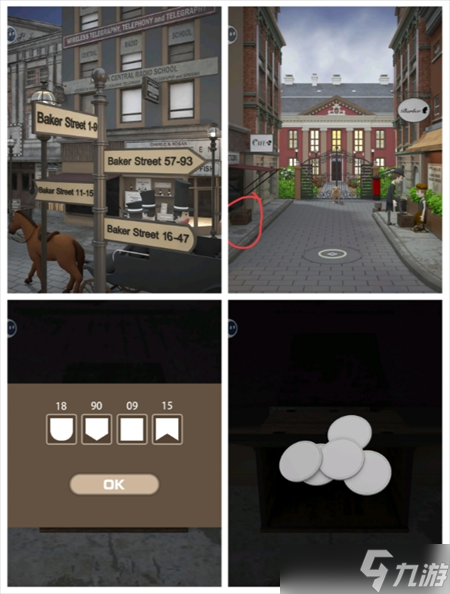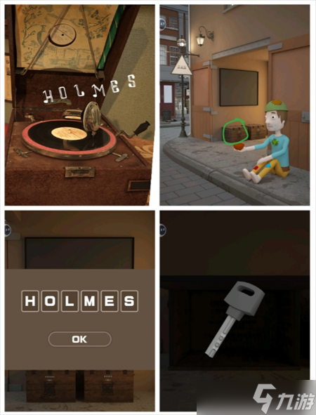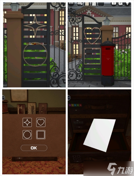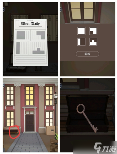 根据字母提示 打开街道左箱子 得钥匙 打开①笔记本 得相片