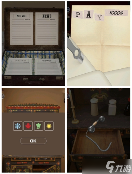 - 信件字体对应报纸日期 再对应季节 打开④左边抽屉 得听筒 装到②电话上
