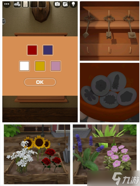- 根据钱币提示和花园的花 打开③右边箱子 得钥匙提示