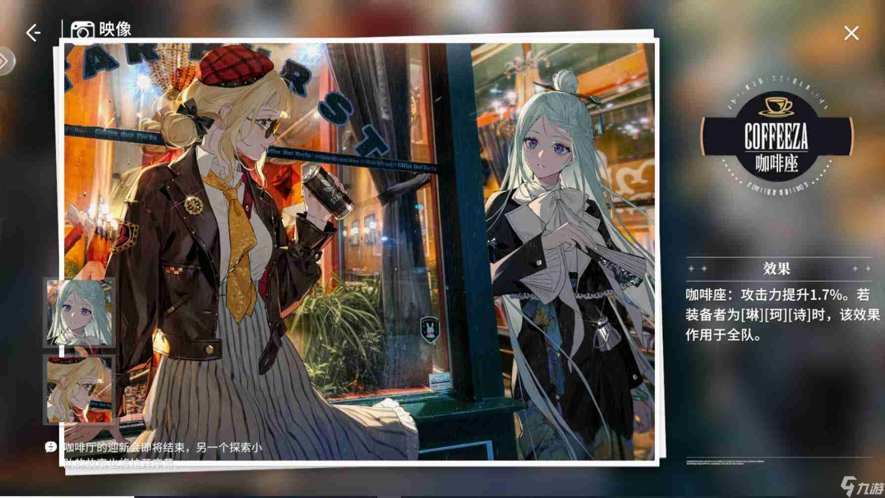 咖啡座: 攻击力提升,并且对琳、珂、诗角色全队生效,是诗角色的专属加成。满级效果:攻击力提升4.1%。