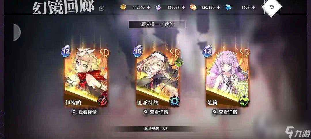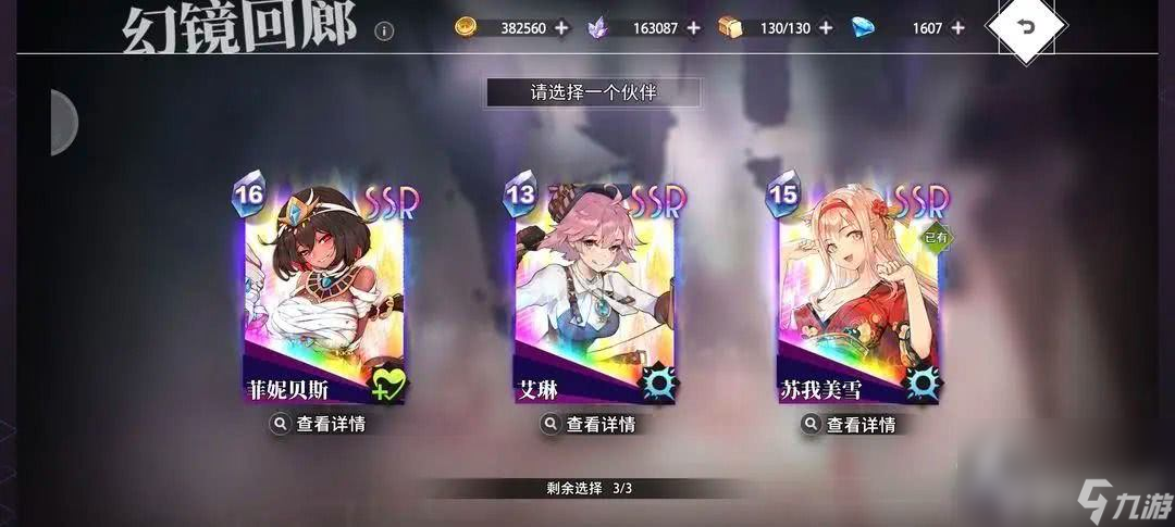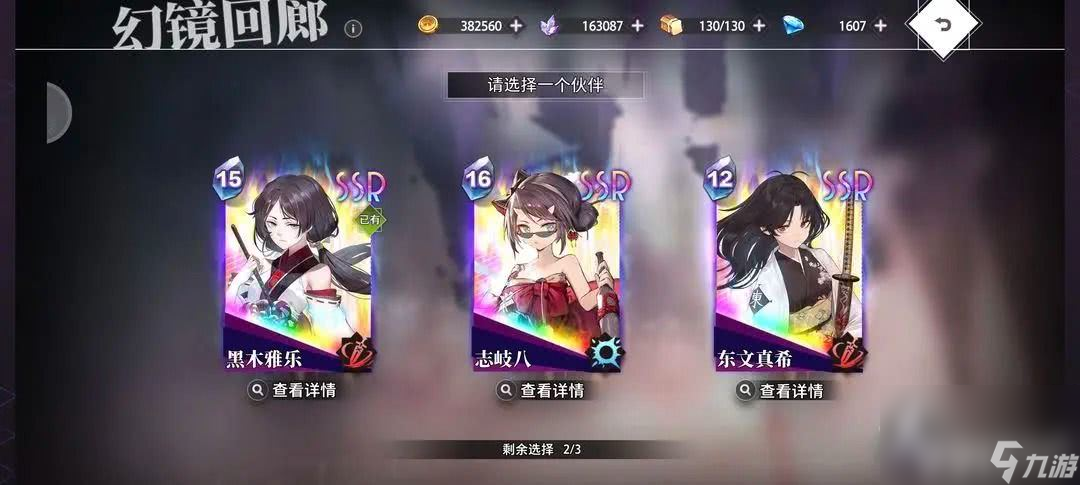 选SSR举例截图 菲妮贝斯和艾琳输出比不过苏我美雪所以1选美雪,后续遇到重复也可2选。