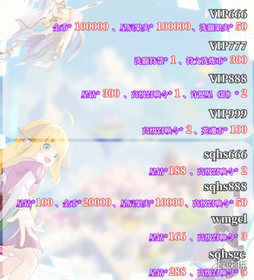 兑换码:VIP666、VIP777、VIP888、VIP999、sqhs666、sqhs888、wgmcl、sqhsgc。