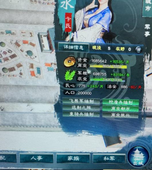 商业值达到城市里,可能会出售各种坤坤大元帅。你需要在每个季度上新元帅时去购买看看,符合条件的留下,不符合的就卖给商人。一般在洛阳、长安、襄阳和邺城这种大城市由于区块较多,最易先达到这个数值。