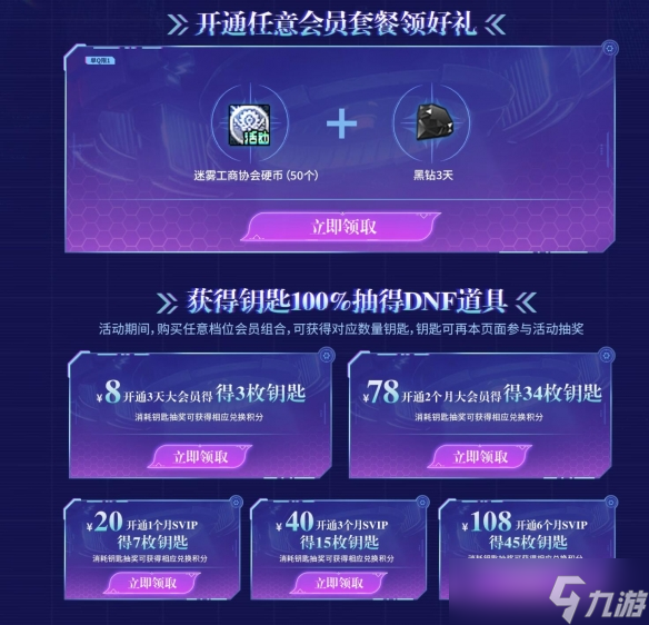 - 玩家开通会员还有额外的礼包,购买任意档位的会员还有道具【钥匙】可领取;