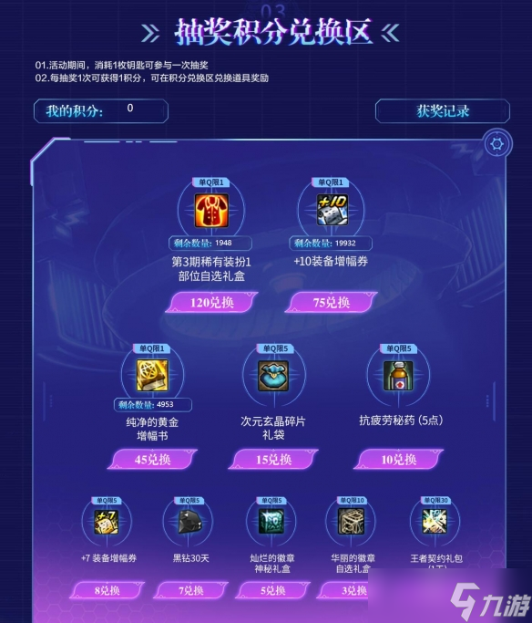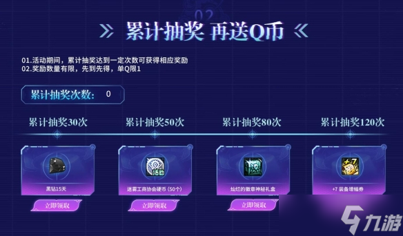 - 累积抽奖30/50/80/120可获得累积奖励黑钻、+7装备增幅券等;