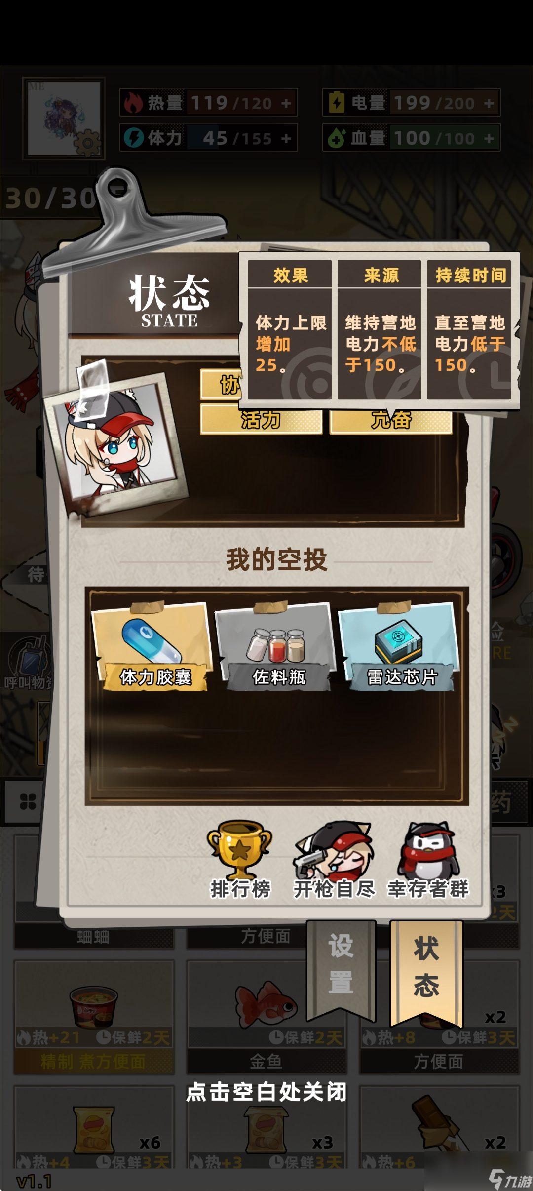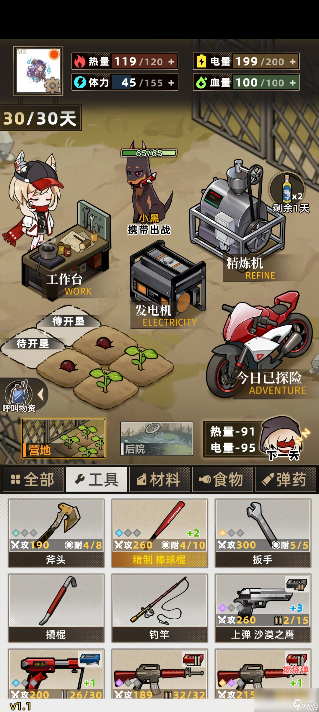 开局天赋拿加体力的药丸,再看广告拿油和狗粮养黑狗。前期重点在于提升攻击力,通过砍树获得击点,然后升级至三级后解锁攻击能力。前期阶段需要多消耗体力,因此优先保证热量大于并吃方便面黄豆荚增加伤害输出。前期控制精力值(能量)为每天额外消耗体力。在攻击力提升的同时,也要注重精力管理,确保保持在合理范围内。狗天赋方面,初期可选重置生命上限的天赋以回血,后期则可以多关注养黑狗技巧。前期应优先种植豆荚,后期再食用黄豆小鱼等食物来补充能量,炼制油水作为后续活动的动力来源。最后,通过打怪升级和积累经验,在之后要先推图后干杂物,以确保有足够的体力应对尸潮的挑战。在战斗中取得胜利,完成任务目标,最终结束游戏。总之,开局阶段需要合理管理体力、精力以及狗天赋,通过不断升级提升战斗力,并配合养狗技巧逐步提高综合能力。