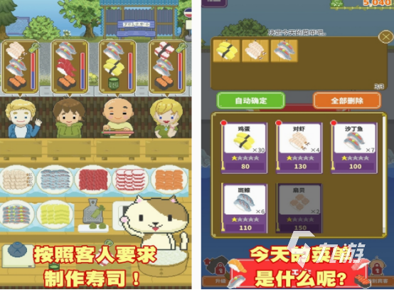 这款玩家可以经营寿司摊位的小游戏,从故事开始时需要按照客人的要求制作寿司。除此之外,玩家必须先去钓鱼并用钓到的鱼来制作寿司。通过这种方式推动故事情节的发展,并且还能在游戏中免费体验烹饪的乐趣。玩家在经营餐厅的同时,也能利用各种食材制作美味的寿司。