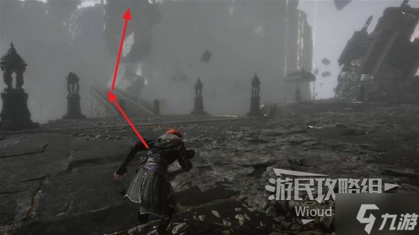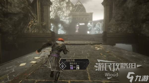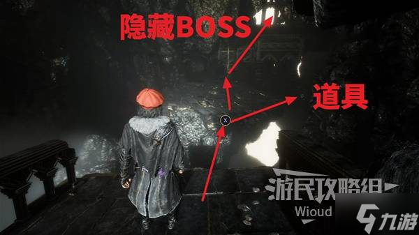 爬完一段向上的楼梯立刻往右后方绕,可以捡个强化道具。