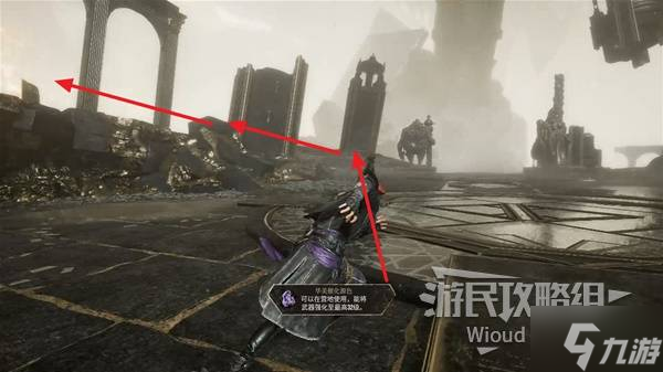 沿路走,穿过一个方形拱门后左拐,可以捡到一个【灵光色】。