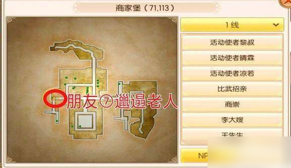 - 第七个朋友:坐标商家堡(71.113),人物:邋遢老人