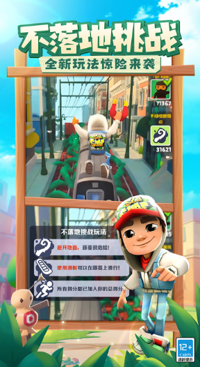 这款充满活力与惊喜的跑酷游戏像是一场永不停歇的欢乐派对!玩家化身年轻涂鸦师,在飞驰的地铁轨道间展开冒险,身后是追赶的保安和警犬,气氛紧张又刺激。玩法简单有趣,只需滑动屏幕就能操控角色左右移动、跳跃翻滚,轻松躲开障碍物。还有超多道具助力:磁铁能自动吸附金币,喷气背包助你一飞冲天,超级滑板关键时刻还能挡下撞击!让玩家尽情享受奔跑的乐趣和挑战的刺激感。