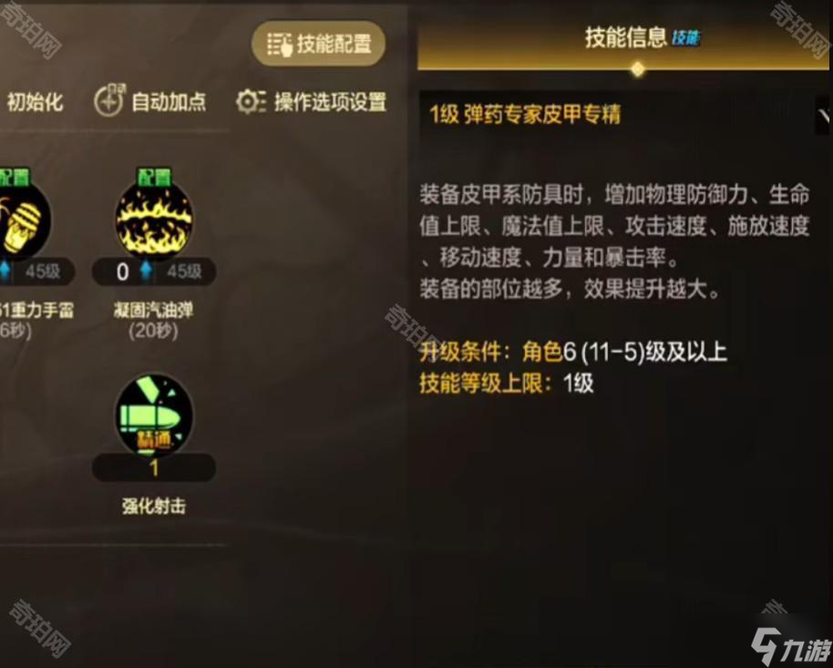 弹药加点比较简单20-65级的技能优先输出技能,其次被动,全部点满。