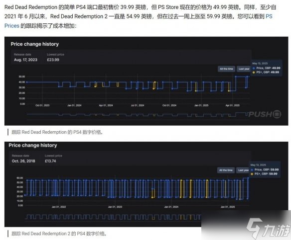 Xbox One与PS台上的荒野大镖客:救赎及荒野大镖客售价均有变动,前者从镑升至镑,后者则从镑增至镑。两款游戏的合集套装价格也相应上调了,由镑攀升到镑。此变动在巴西、捷克和智利等国家亦有类似的影响。