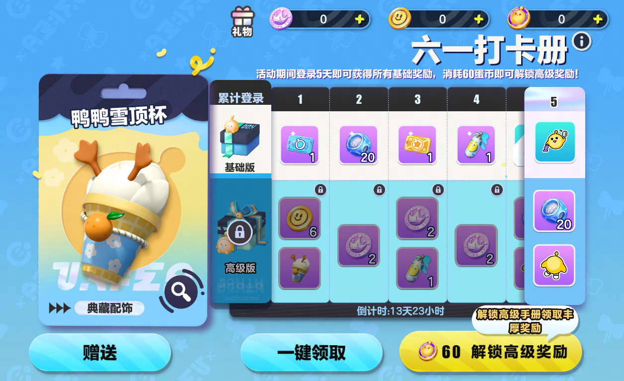 至,蛋仔岛迎来六一节日庆典!参与活动的蛋仔们只要在活动期间连续登录,即可获得可爱的表情符号“大显身手”作为奖励。此外,消耗蛋币就能解锁高级版手册,届时将有配饰“鸭鸭雪顶杯”和动作“鸭子舞”等你来拿!