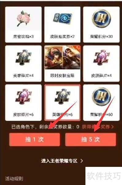 王者荣耀抢先服 类型:角色扮演 大小:449.0mb 语言:简体中文 评分: 查看详情 王者荣耀抽嘻哈天王攻略 王者荣耀嘻哈天王抽奖活动怎么玩?快来了解详细攻略,轻松参与赢取好礼! - 进入嘻哈天王抽奖活动页面。 - 购买道具可获得抽奖机会。 - 可选单次或五次抽奖点击。 - 参与抽奖赢取嘻哈天王限定皮肤。