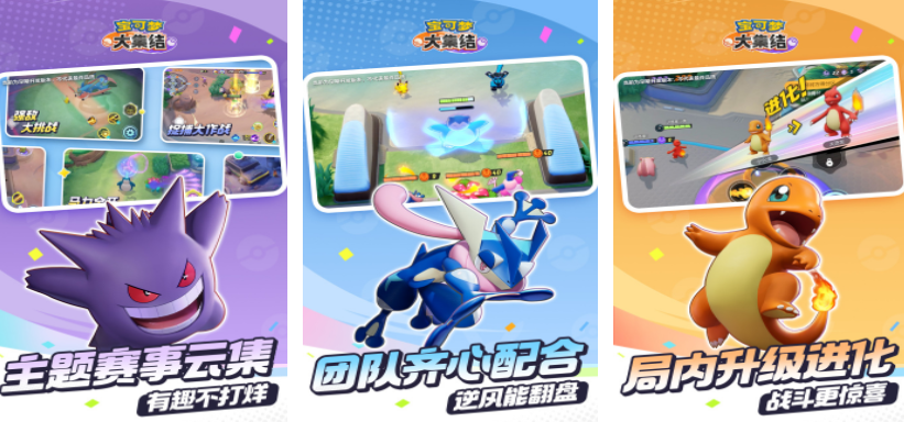 宝可梦大集结是一款主打对战玩法的游戏,游戏支持多种模式,包括抗和式,鼓励玩家比拼各自精灵角色的能力。在这些模式下,玩家可以与其他成员组成队伍,并选择自己最喜爱的宝可梦加入战斗。每个进入战场的宝可梦最初都是初级形态,在等级不断提升的过程中,它们将进化成更强大的版本,从而具备更强的战斗能力。
