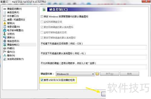 禁用USB与SCSI驱动器检测方法 本文介绍了如何在硬盘中禁用USB和SCSI驱动器的检测方法。 - 在硬盘软件中,点击顶部菜单栏的配置选项。 - 在配置界面中,勾选禁用USB和SCSI驱动器检测选项的开关。 - 勾选选项后,禁用USB和SCSI驱动器检测功能。