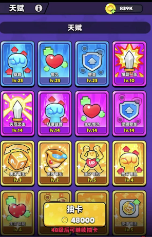 天赋:金币抽卡加队伍属性的,每次升级优先金币拉满抽卡