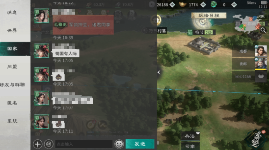 初期阶段,由于自然资源短缺,每个途径都不能浪费。除了主线之外,还有以下几种方式获取资源:第一个是“归心”。在城池被攻占后,可以通过该玩法获得大量资源,比如元宝、装备以及各种材料和道具。第二个是任务系统。任务系统包括国家任务、日常任务和循环任务等,也是有丰富资源产出的,例如国家贡献、民心经验、元宝等。第三个是村落产出。如果顺利收服城池或剿灭叛军,就能拥有村落。村落不仅提供固定的资源产出,而且其资源源源不断,玩家可以在此不断获取不同材料。然而,这里也存在一个累计上限,满时后就不再有新资源的产出,因此每天都不要忘记领取。最后是系统玩法。直接进入“征战”界面,这里有战役、夜袭、授业等丰富选择,每一种都有对应的资源可以获得。