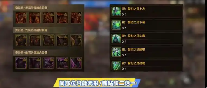 选择融合装备,一定要选择和无形装备不重复的相关部位。