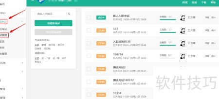 轻松切换到您的企业学习平台,找到“用户中心”,在右侧找到所有考试项目,包括草稿、待上演、进行中的测试和已完成的记录。只需轻轻点击,就能快速访问新的考试创建界面,正式开启您的课程设计之旅!